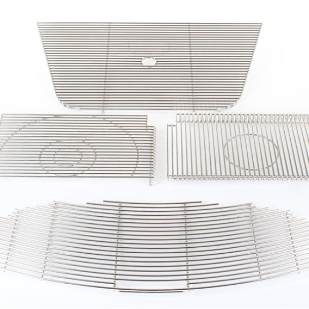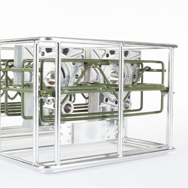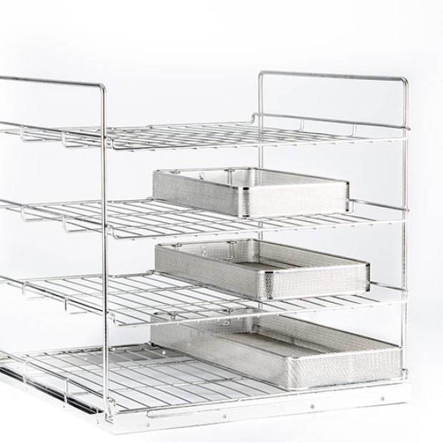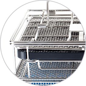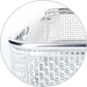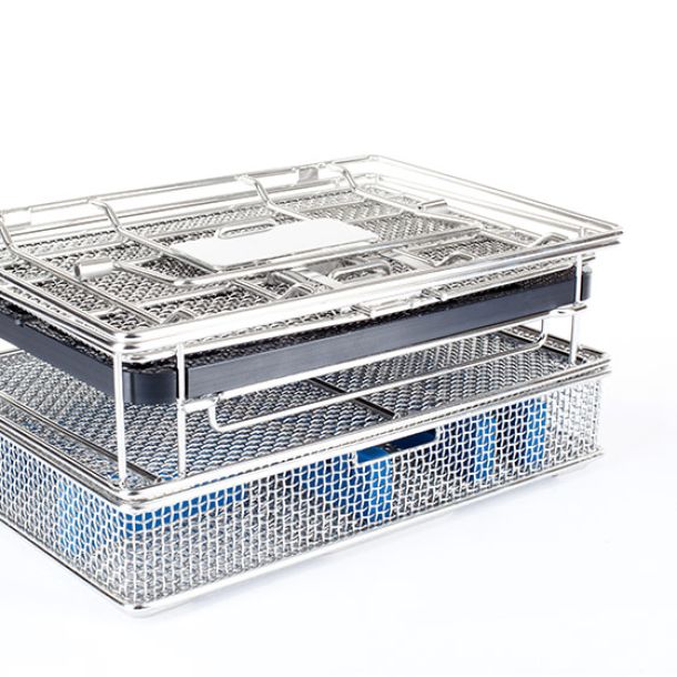 Solid and functional steel wire items, designed to optimize handling and treatments such as washing and sterilization.